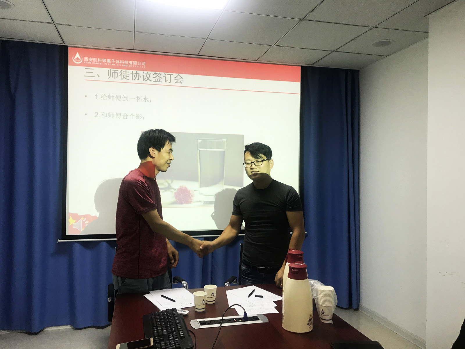 首先由總經(jīng)理助理陳灃宣讀“師徒管理規(guī)定”和“師徒結(jié)盟”活動方案;隨后,組織新老員工進行了師徒結(jié)盟簽訂儀式:每對師徒簽訂了“師徒協(xié)議”,由徒弟給師傅敬一杯茶,確定雙方師徒關(guān)系。在表態(tài)發(fā)言環(huán)節(jié),師傅代表何亮:鄭重承諾將毫無保留將工作中的積累經(jīng)驗傳授給徒弟,攜手共進;徒弟代表袁旭在發(fā)言中講到:嚴格要求自己,主動學(xué)習(xí),多問、多聽、多觀察、多討論,快速提升自身技能,為公司快速發(fā)展貢獻力量。