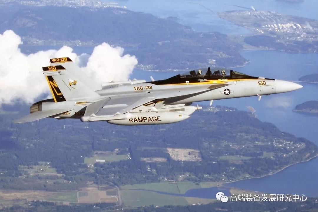 2017年,首部《電子戰(zhàn)戰(zhàn)略》制定完成。這表明,繼網(wǎng)絡(luò)戰(zhàn)后,電子戰(zhàn)很可能成為美軍新的獨立作戰(zhàn)樣式。從破開恩尼格碼的“圖靈炸彈”到席卷波斯灣的“白雪”行動,圍繞電磁頻譜的爭奪愈演愈烈。作為承擔美軍絕大部分電子戰(zhàn)任務(wù)的軍種,美國海軍艦載電子攻擊機EA-18G“咆哮者”無疑是支撐上述戰(zhàn)略的核心。