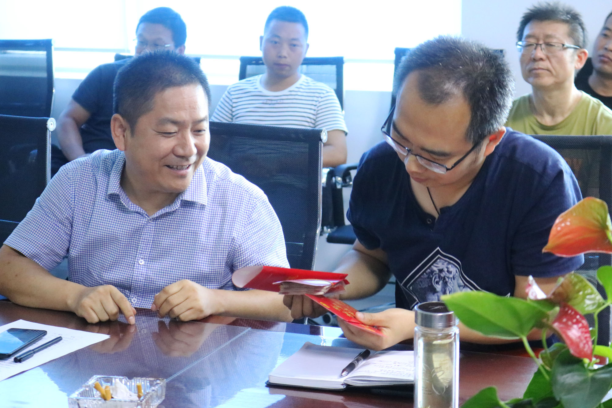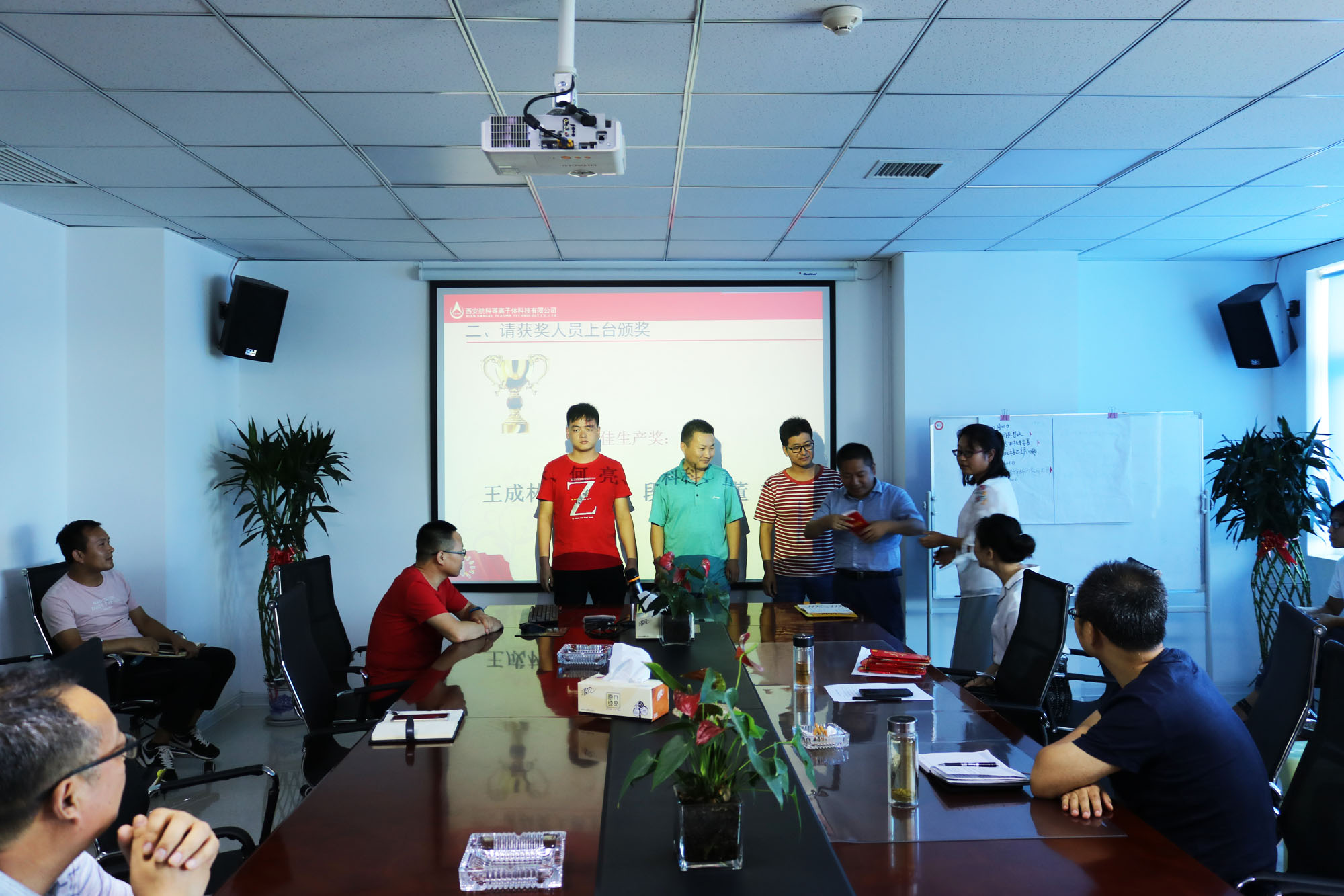 總工程師兼副總經(jīng)理馬俊與楊副總對獲獎(jiǎng)員工進(jìn)行頒獎(jiǎng)。