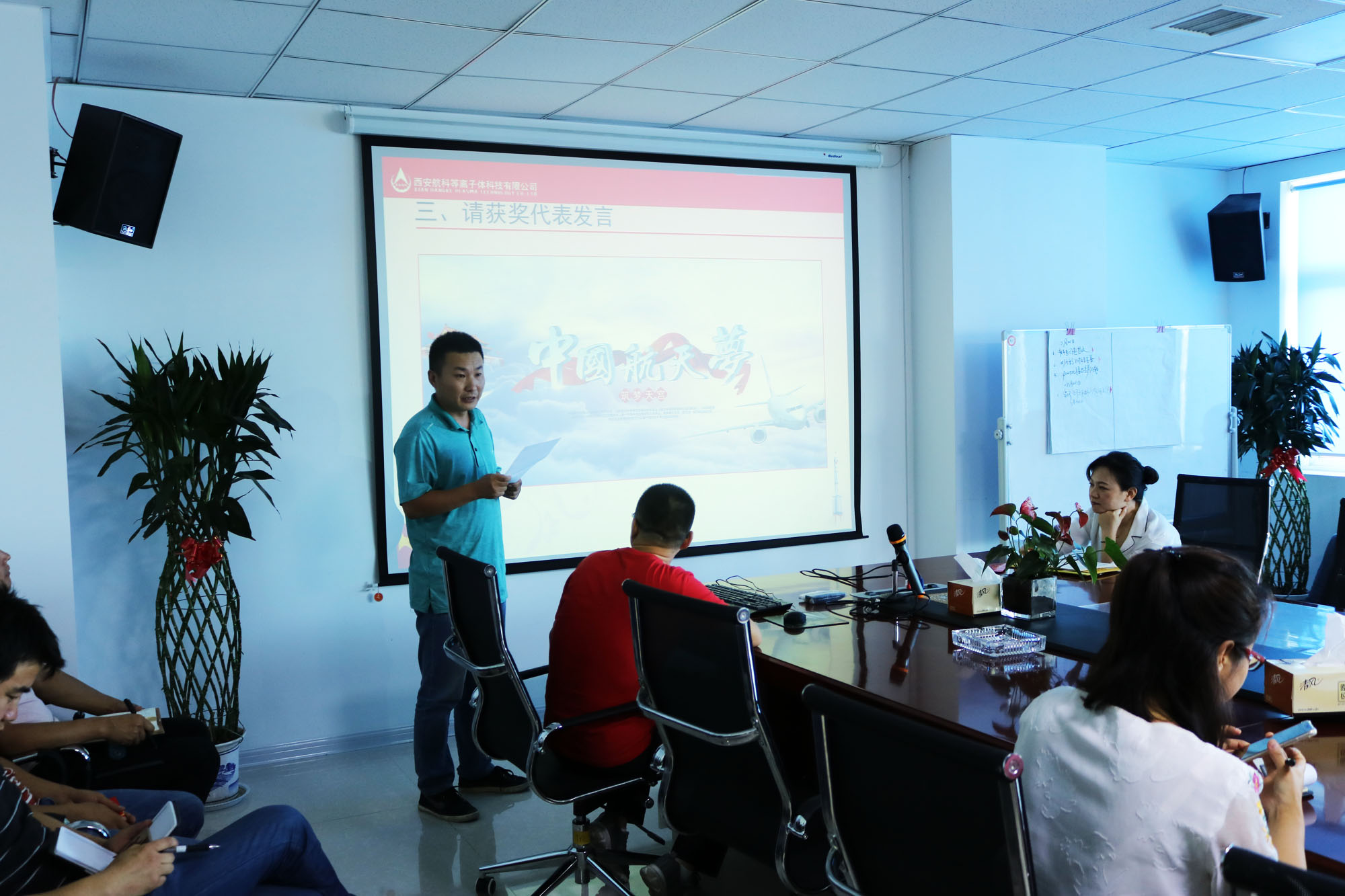 生產(chǎn)管理部部長王成林作為獲獎(jiǎng)代表進(jìn)行了發(fā)言:他代表獲獎(jiǎng)人員感謝公司對項(xiàng)目組織過程中所有參與員工的付出的肯定。他強(qiáng)調(diào):選擇航科是正確的,在這個(gè)平臺上,我們不僅共同學(xué)習(xí),還將共同攜手,共同努力,共同奮斗,共享成功的喜悅。