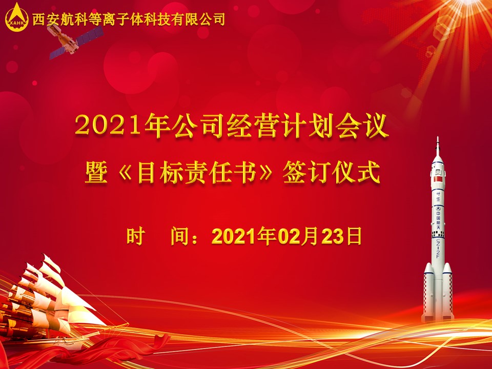 2021年2月27日下午14:30,西安航科等離子體科技有限公司組織全員召開2021年公司經營計劃會議暨《目標責任書》簽訂儀式。